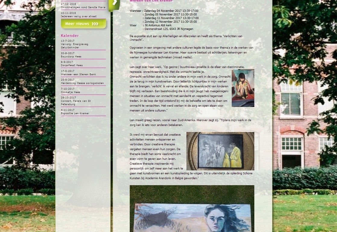 In het weekend van 4/5 en 11/12 november 2017 is er een expositie van schilderijen van Len Kramer te zien in haar woonplaats Nijmegen.